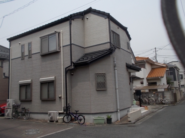 外壁色は施工前と比べ、明るいイメージで仕上げました。1階部分と2階部分の濃淡も逆転させています。施工前と比べると色分けのメリハリが出て、かわいらしい仕上がりになりました。ほかにも、玄関前の外溝を新設しています。